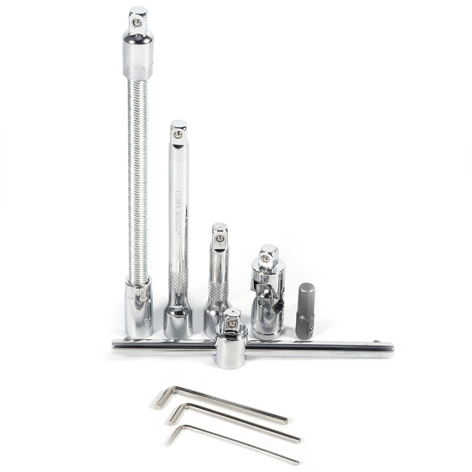 1、This socket spanner set is made from high quantity chromium-vanadium steel, high hardness and long service life 2、Fine workmanship, well polished, handles are designed for comfortable feeling of grip 3、Sockets and extensions remain locked onto the drive is designed with easy-to-reach, quick-release steel ball 4、Come in a great container, and they lock together well, allowing for easy transport and storage 5、Pretty good for every day normal use, get anything you need around the house or car done