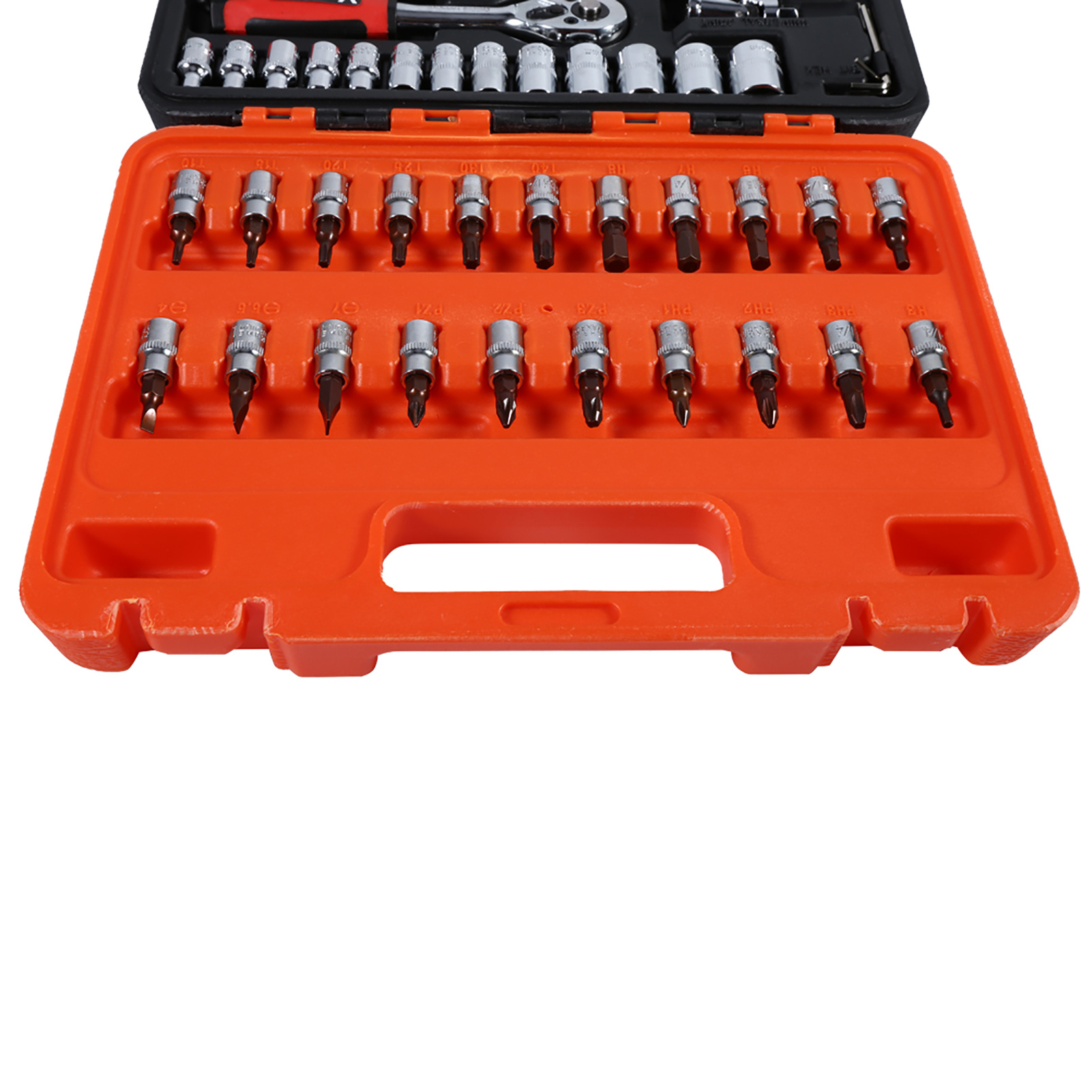 Description: This socket spanner set is constructed of high quality chromium-vanadium steel and heat-treated for performance. Set contains 13 pcs 1/4 inch sockets, 21 pcs socket bits, 1 pc 1/4 inch ratchet handle, 1 pc 1/4 inch spinner handle, 3 pcs hex key wrenches, 1 pc 1/4 inch universal joint, 1 pc 2 inch extension bar, 1 pc 4 inch extension bar, 1 pc 1/4 inch flexible spinner handle, 1 pc 1/4 inch T-bar that all packed in a sturdy case. With this set, you can get almost every tool you need to fix around house or car. Features: This socket spanner set is made from high quantity chromium-vanadium steel, high hardness and long service life. Fine workmanship, well polished, handles are designed for comfortable feeling of grip. Sockets and extensions remain locked onto the drive is designed with easy-to-reach, quick-release steel ball. Come in a great container, and they lock together well, allowing for easy transport and storage. Pretty good for every day normal use, get anything you need around the house or car done. Specifications: Main Material: Chromium-vanadium steel Ratchet Handle Size: 15.1 x 2.8cm / 5.94 x 1.1″ Spinner Handle Size: 15 x 0.8cm / 5.9 x 0.31″ Box Size: 26.3 x 19 x 5.7cm / 10.35 x 7.48 x 2.24″ Weight: 1.51kg(approx.) Package Includes: 21pcs x Socket Bits: SL 4,5.5,7, PH 1,2,3 PZ 1,2,3 Hex 3,4,5,6,7,8 T 10,15,20,25,30,40 13pcs x 1/4″ Sockets: 4,4.5,5,5.5,6,7,8,9,10,11,12,13,14mm 3pcs x  Hex Key Wrenches 1pc x 1/4″ Universal Joint 1pc x 2″ Extension Bar 1pc x 4″ Extension Bar 1pc x 1/4″ Flexible Spinner Handle 1pc x 1/4″ T-Bar 1pc x 1/4″ Ratchet Handle 1pc x 1/4″ Spinner Handle Note: 1. Please allow 1-3mm error due to manual measurement. Thanks for your understanding. 2. Monitors are not calibrated same, item color displayed in photos may be showing slightly different from the real object. Please take the real one as standard. 3. Please note that the new type and old type of this product will be sent randomly, and make sure you will not mind before ordering.