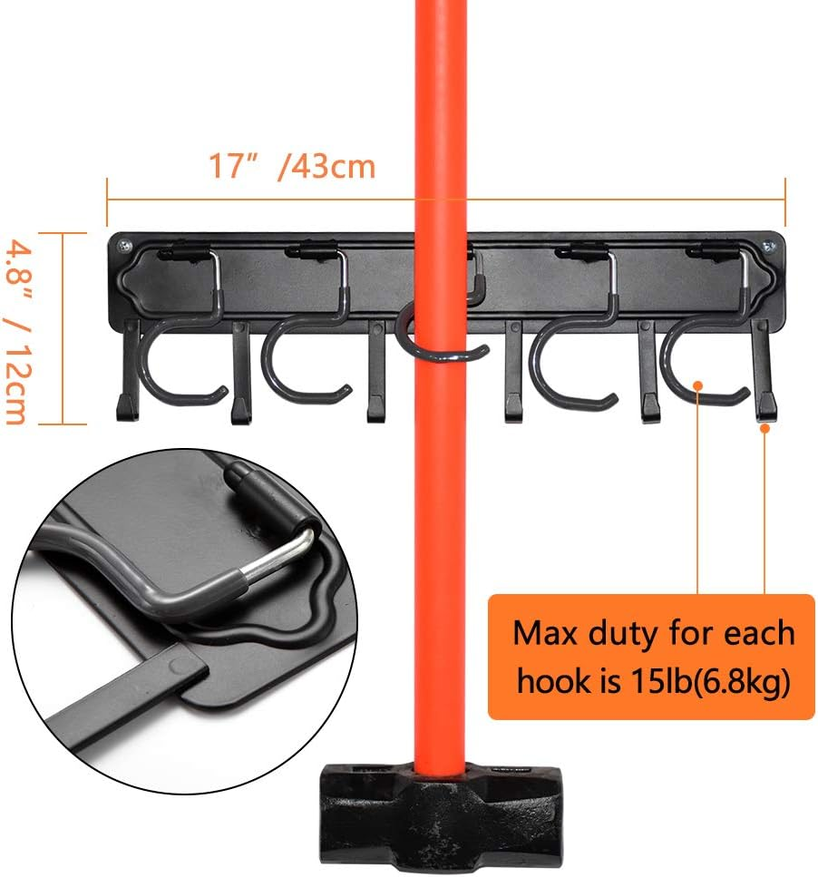 - 【All-Metal】The size of the metal backboard is 17*4.8 inch,with 5 pieces orange rubber maid hooks and 6 pieces black fixed hooks on each pack,It’s a good choice for garage organization like garden shears.