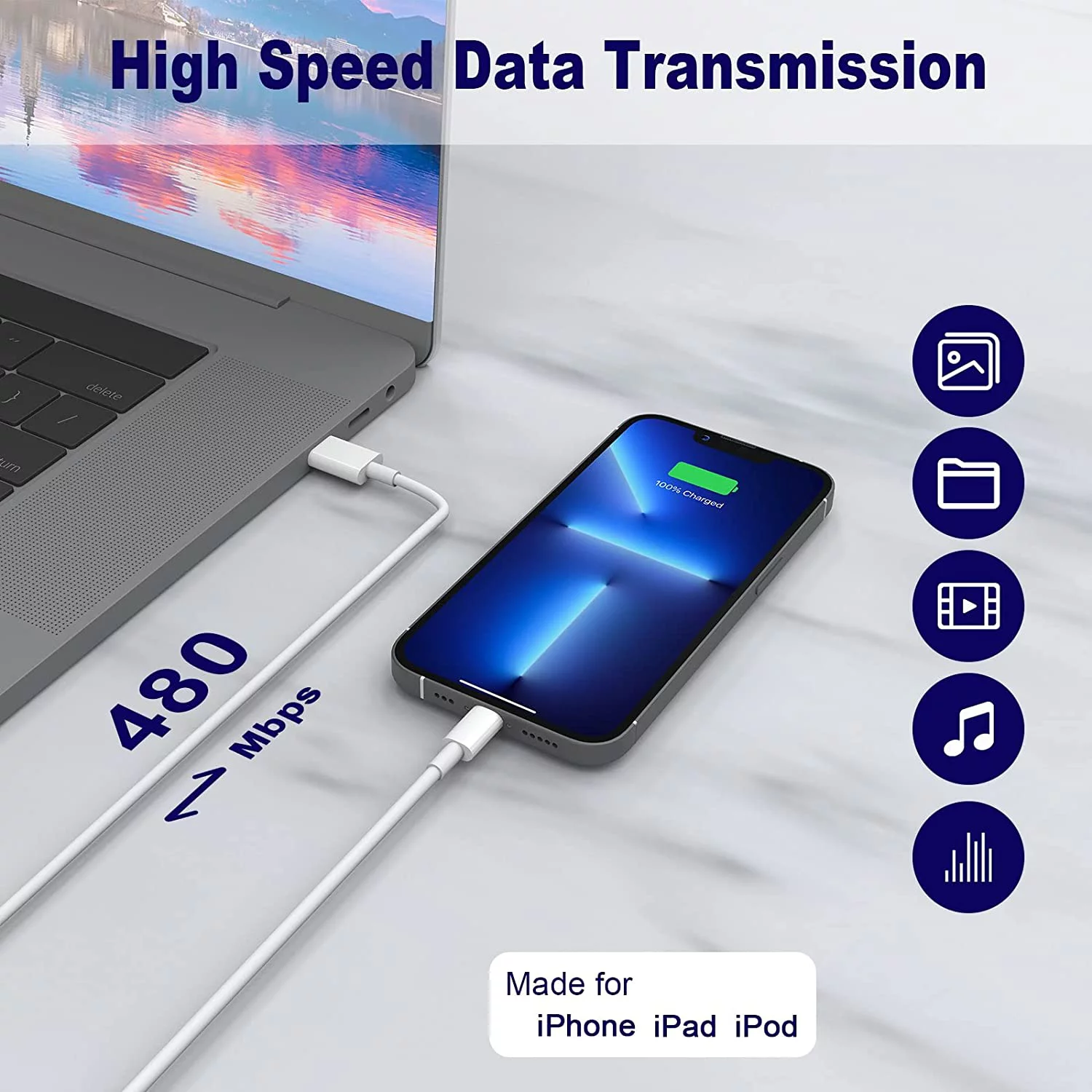 - 【Widely Compatible Fast Charger iPhone】 The iPhone fast charger block and cable perfectly Works With iPhone, iPad. This fast charger iPhone 6 ft also charge for iPhone 7/6 Plus/iPhone 5/ 5c/ 5s/ SE in a original charging speed.