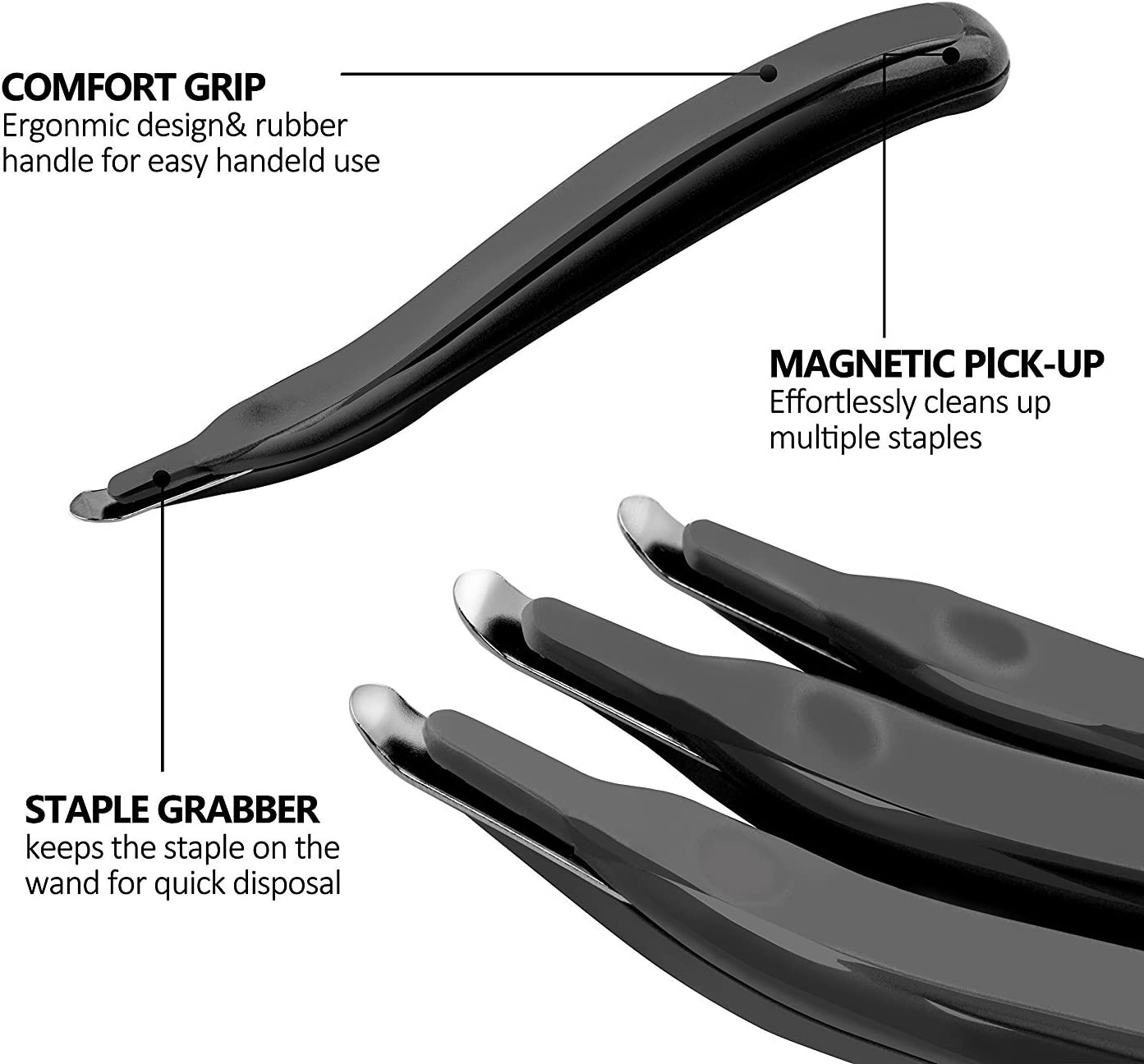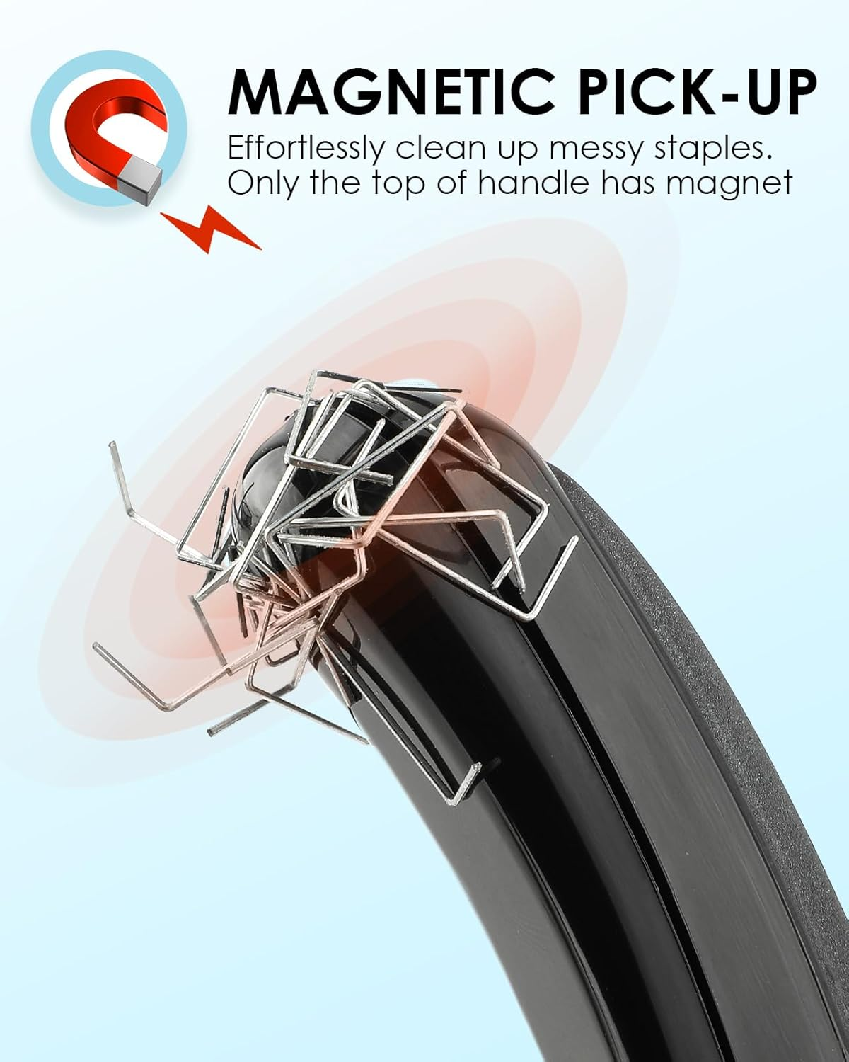 - Magnetic Feature: The tail of the handle has a magnet to collect and clean up stray staples quickly.