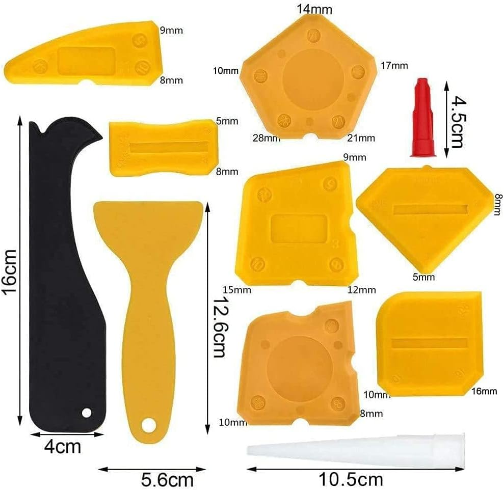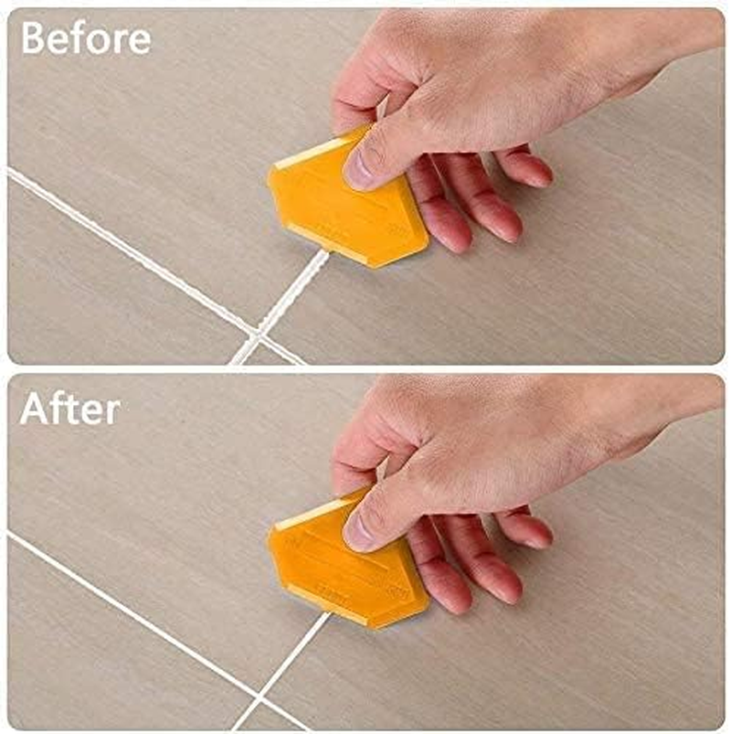 3 in 1 Silicone Caulking Tools Grout removal scraper, a multifunctional tool that can easily remove old caulk and all kinds of stubborn residual glue, also can smooth out the caulk well. No masking tape required, easy and fast to use, saves time, perfect for home improvement and cleaning.These caulkers have a perfect design that makes the difficult task of caulk removal easy and fast without damaging the surface. You can easily and quickly remove the spent glue that has solidified on the surface, ensuring quality and improving aesthetics. You’ll be glad that non-professionals can easily do a professional job with these caulking tool sets as well.Works well with most types of sealant, silicone, resin, grout, and more. Ideal for use in showers, windows, siding, sinks, and tubs with latex, silicone, or acrylic caulk. The caulking tools can use for home, kitchen, bathroom, tank, window, sink joint, and so on.The Caulking Tools was designed with Non-slip push-pull button, replace the 5 silicone pads which you want( including 3R,6R,10R,13R,17R radius) easy to clean without wasting caulk; And they are reusable with a long lifetime